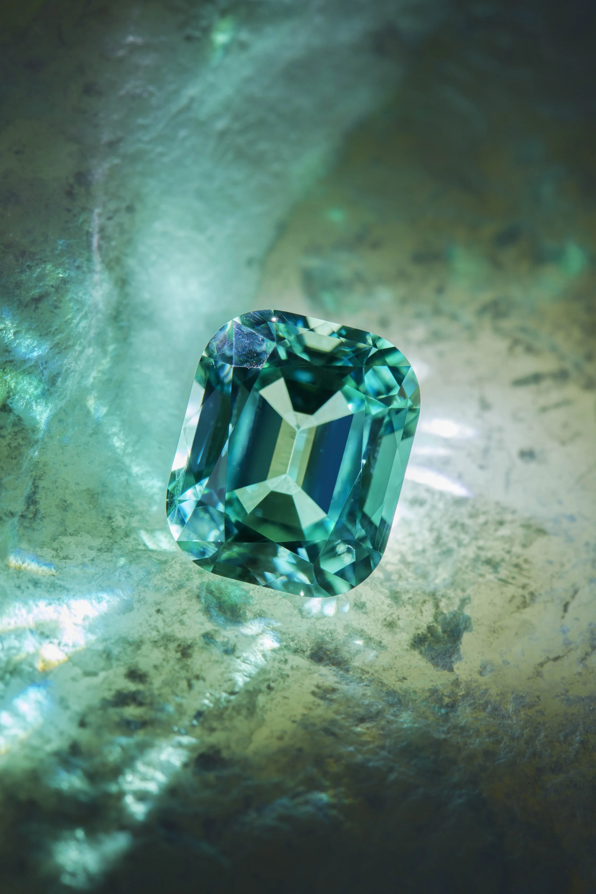Lagoon Tourmaline, like the Paraiba is a member of the large and colorful Tourmaline family. Tourmalines may be found in all colors of the rainbow, but Lagoon Tourmalines are only seen in shades of blue and green with their own unique display of strikingly intense light to dark saturated colors. They differ from a Paraiba Tourmaline as they don’t contain copper, and as such have an altogether different feeling to their vibrancy. They appear to have a unique calm and gentle strength of presence.
